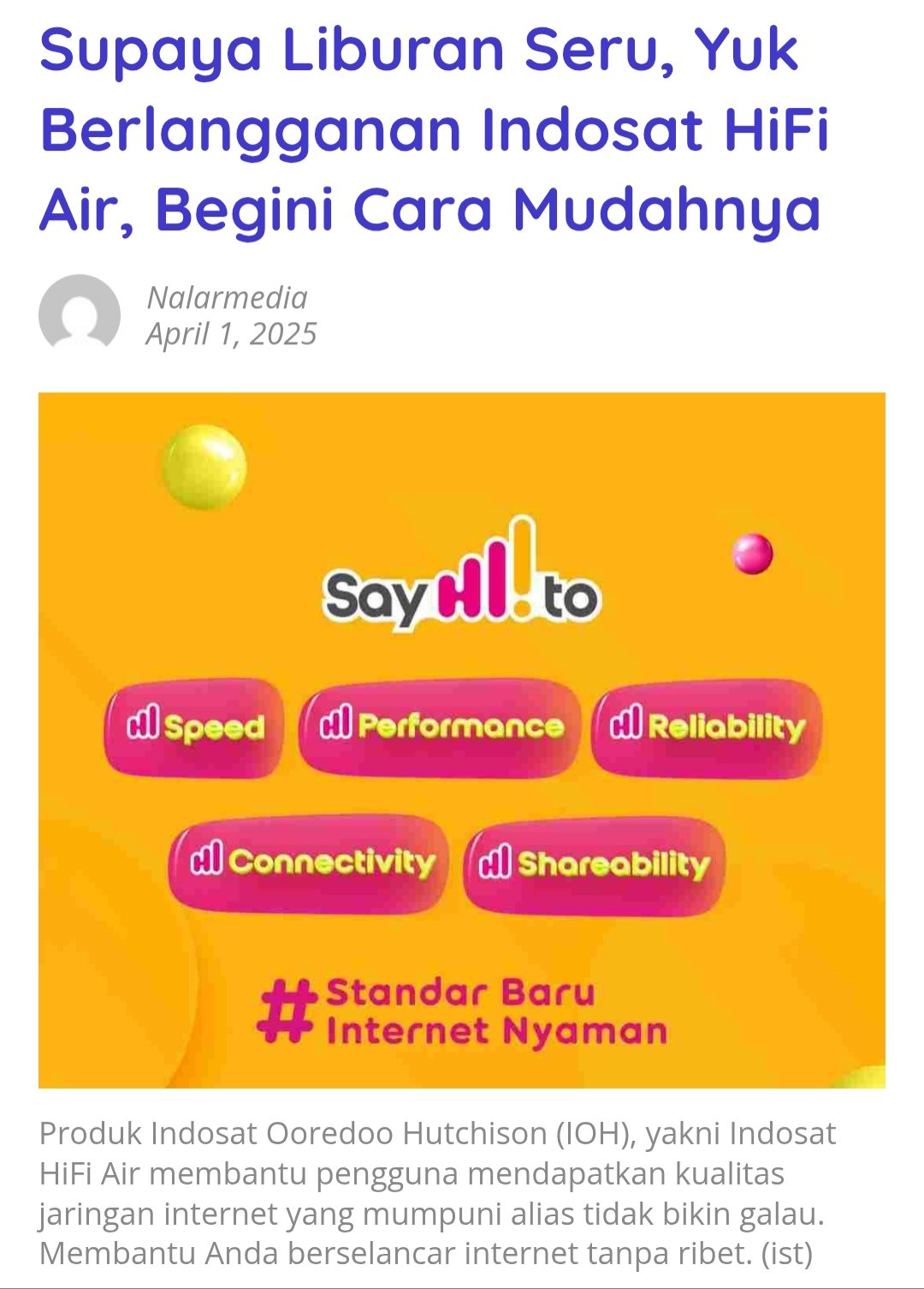 Supaya Liburan Seru, Yuk Berlangganan Indosat HiFi Air, Begini Cara Mudahnya
